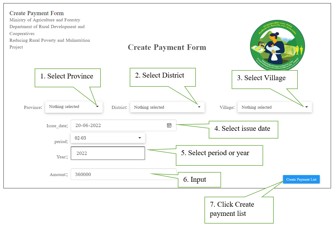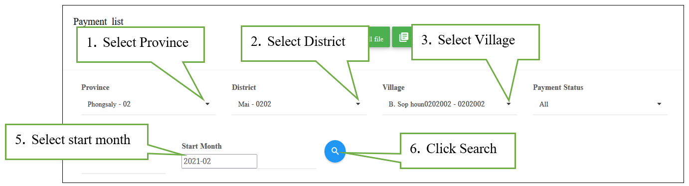 v After that, select province, select district, select a village, and then follow as shown below: