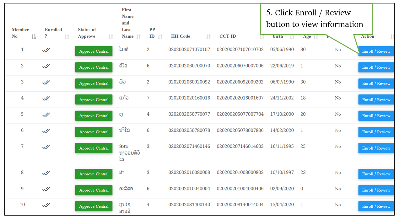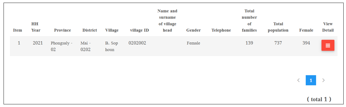 v ລະບົບຈະສະແດງໜ້າຂໍ້ມູນຂື້ນມາ, ເຊີ່ງສາມາດ ເລືອກ ແຂວງ, ເມືອງ, ບ້ານ ເພື່ອຄົ້ນຫາໄດ້ ດັ່ງລຸ່ມນີ້: