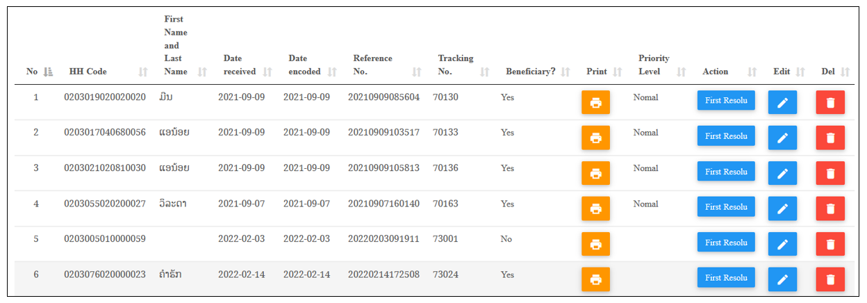 v ລະບົບຈະສະແດງໜ້າຂໍ້ມູນຂື້ນມາ ປະກອບມີ ປຸ່ມຄົ້ນຫາ, ປຸ່ມເພີ່ມ, ປຸ່ມແກ້ໄຂ ແລະ ປຸ່ມລຶບ ດັ່ງລຸ່ມນີ້: