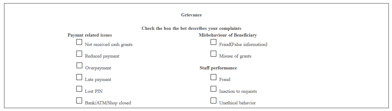 v It is SMS type, you can select data to search. SMS Type include: select all, enrollment, grievance, payment, compliance CCT conditions and SMS Broadcast.